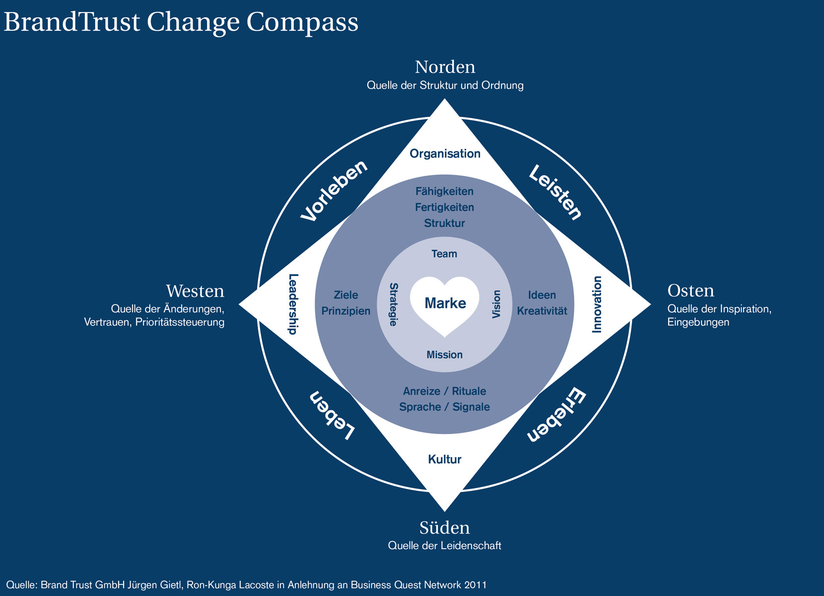 Die Frage, die sich also als erstes stellt, ist: Was sind die Ziele, die „im Westen", der Himmelsrichtung für Veränderung, formuliert wurden? Abhängig davon sollte definiert werden, wer zukünftig für das Management der Marke zuständig sein sollte und wo diese Zuständigkeit verankert werden soll.
