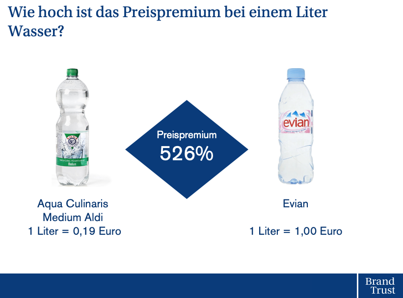 Für das Wasser der Marke Evian zum Beispiel wird deutlich mehr bezahlt als für schwächere Marken: