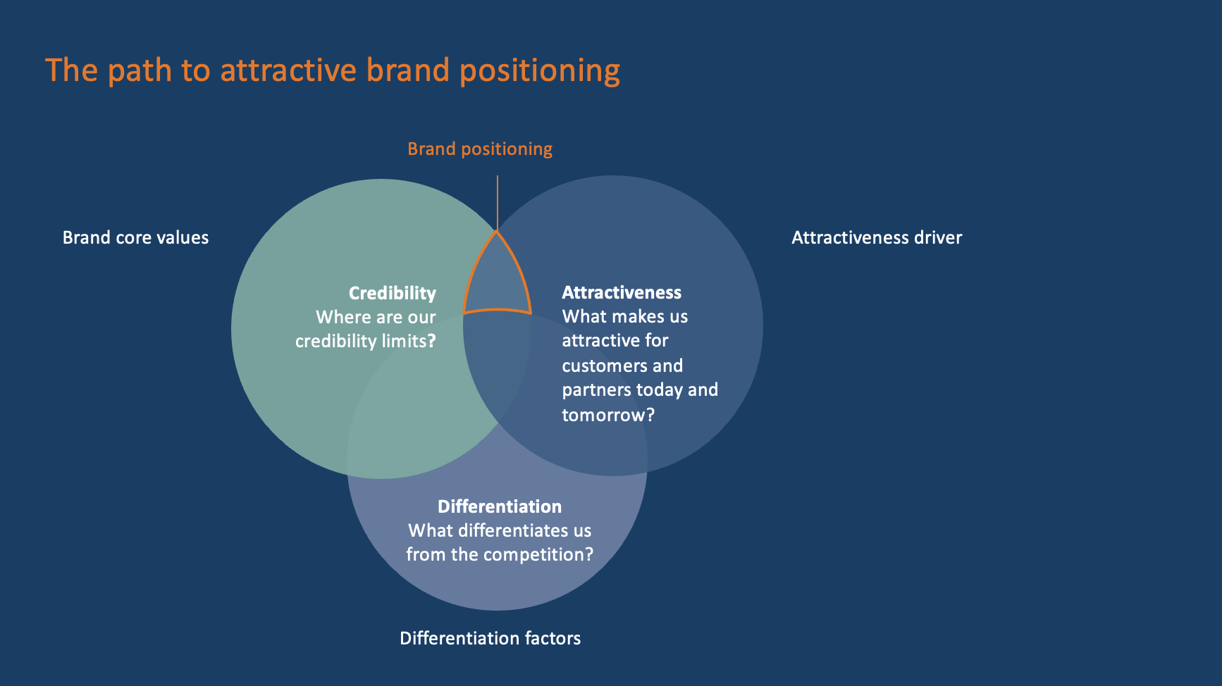 The objective is to identify and condense the brand's countless peak performances (brand core values) and ultimately express them in condensed form through the brand positioning and the brand stylistics in an unmistakable, inimitable, and credible way using the entire marketing mix toolbox. This is how performances are perceived by the customer, remembered, recommended, and appreciated.